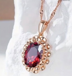 See kuldne kaelaehe punase särava lihvitud kiviga on loodud neile, kes hindavad luksust, enesekindlust ja pilkupüüdvat elegantsi. Teemant‑lihvis kivi püüab valgust igast küljest, luues sügava, rubiinilaadse sära, mis tõstab esile kandja kaela ja dekoltee loomuliku graatsia.