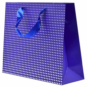 Paelsangaga hõbedaste täppidega sinine kinkekott 25+8x20cm