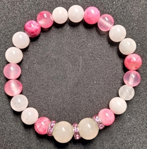 Roosa pärsia nefriit ja roosa kvarts 8mm ja 10mm 19cm
