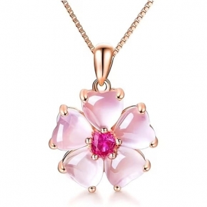 See õrn ja naiselik lillekujuline ripats on loodud neile, kes hindavad peent esteetikat ja ajatuid ehteid. Viie läbikumava roosa kroonlehe keskelt särab sügavroosa kristall, mis püüab valgust igast küljest ja lisab kaelakeele lummavat sära. Kuldtoonis kinnitused ja peen kett loovad harmoonilise, luksusliku terviku.